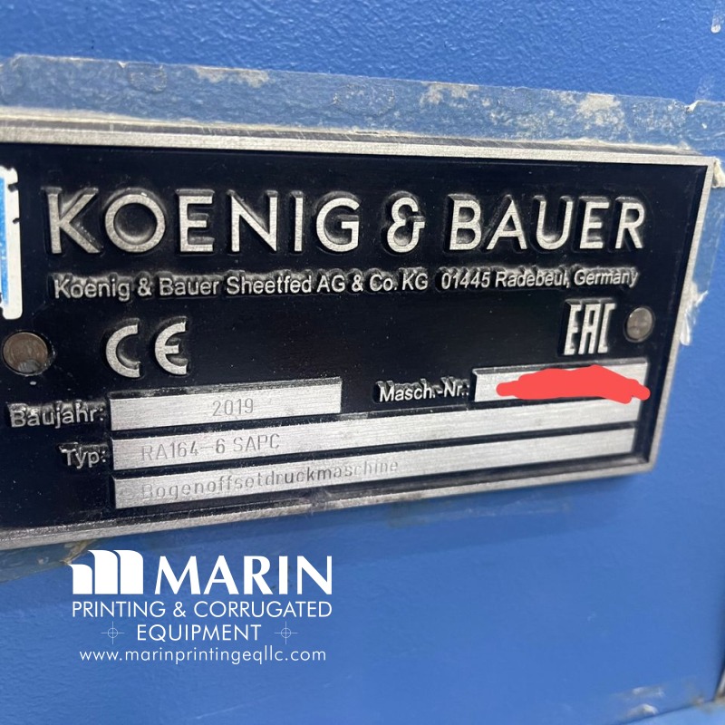 2019 KOENIG & BAUER RAPIDA 164 OFFSET PRINTING MACHINE