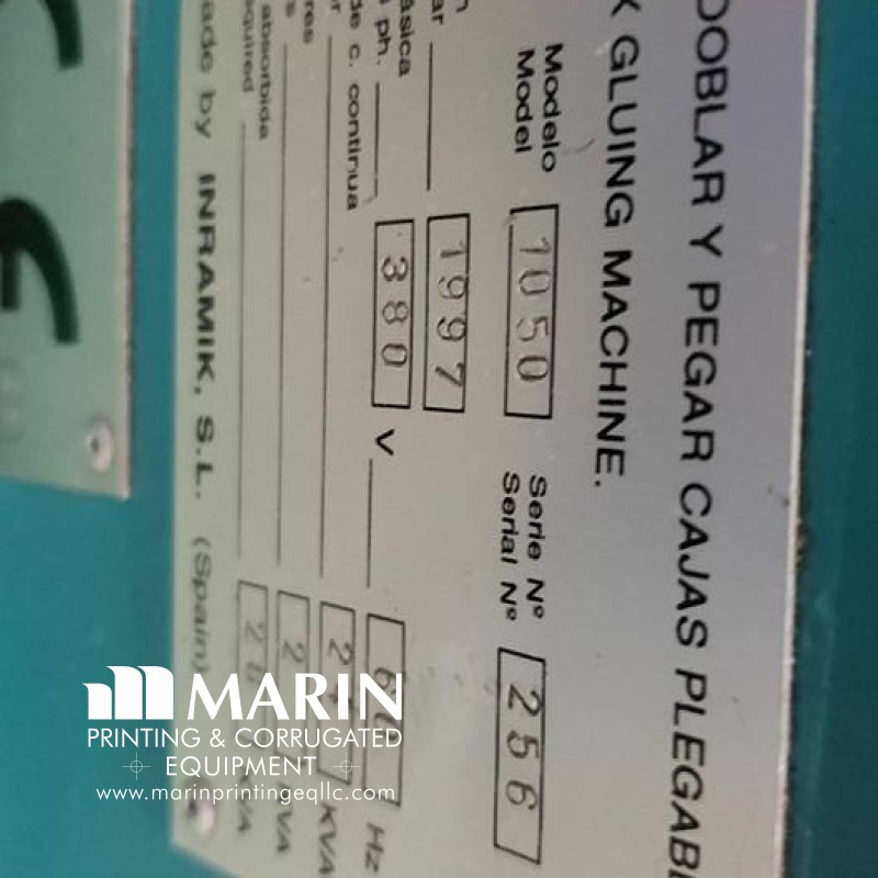 - Model 1050 - Serial no. 256 - Min size 2" - Max size 40" - Automatic fold - Straight line - 4/6 corner - 4 guns 4 channels - Cold nordson glue