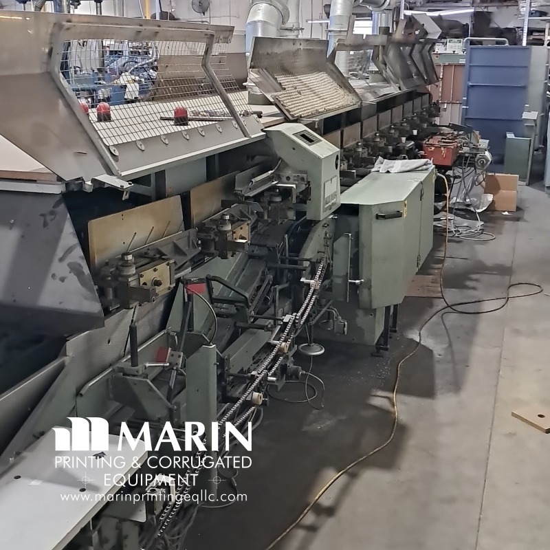 Type 420 With 27 Clamps # 124 Year 1999 One (1) used Kolbus 20 pocket Collator Type 24 # 804 Three (3) Glue pot system # 831 including: PUR Layflat Cold melt Hot melt PUR (2) on the machine and (3) spares Merit Martini 3671 Trimmer # 9401656. All conveyors Carousel Transformers Spare parts Manuals MAKE OFFER