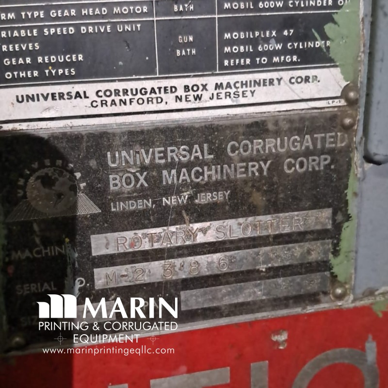 Uses water ink 66 x 160 inches 1 color No extra parts Prints Slotter Slot Underpower Serial # M - 2386